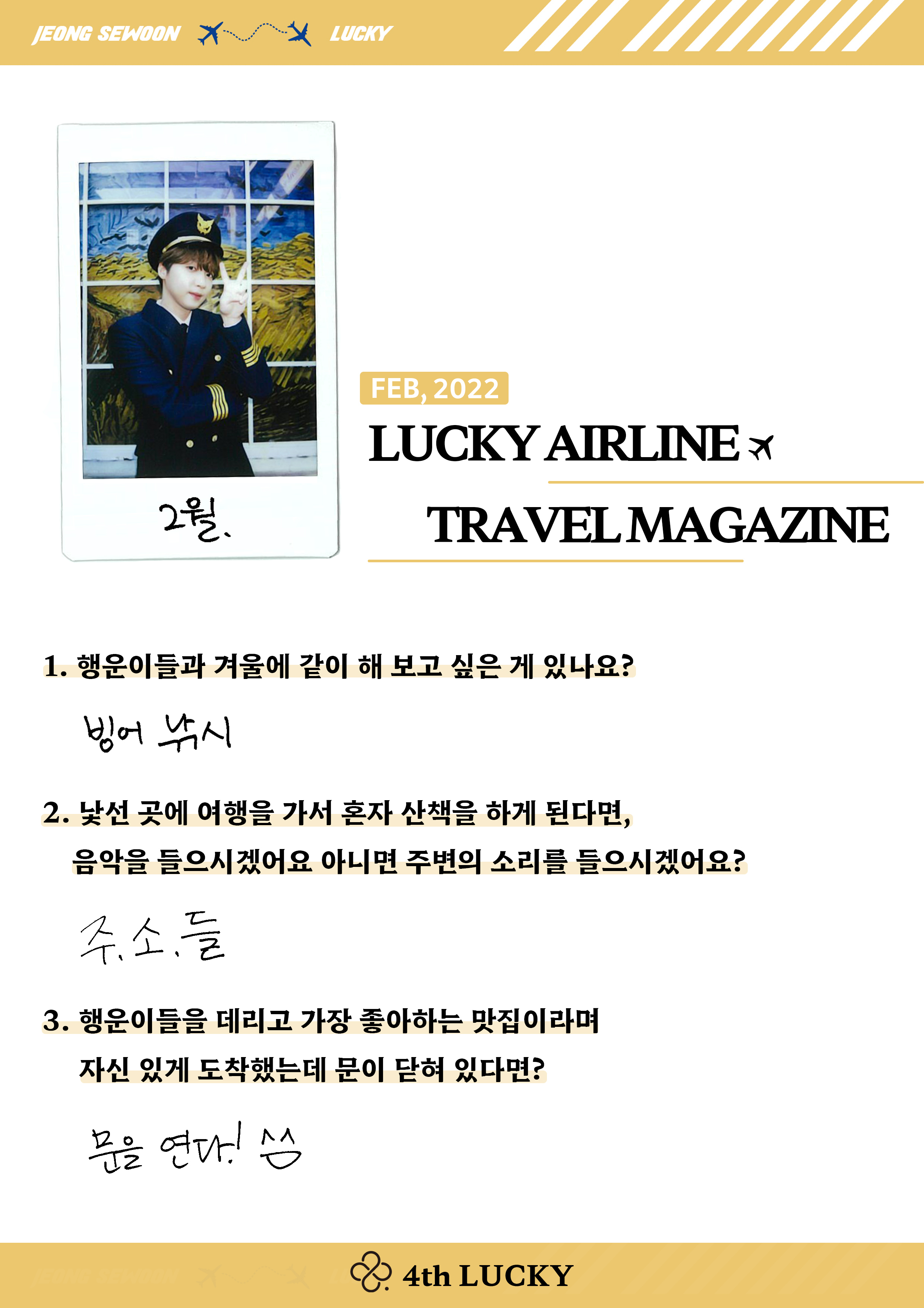 | [LUCKY AIRLINE] TRAVEL MAGAZINE 3월호 (0) | 2022.08.24 |